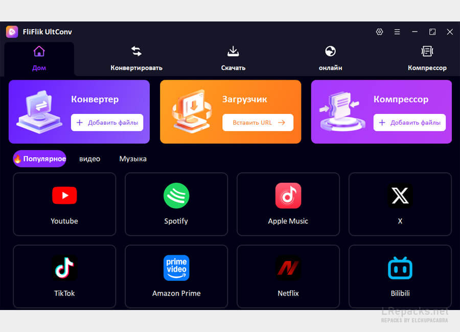 FliFlik UltConv (Repack & Portable) - универсальный конвертер видео и аудио "все в одном", который позволяет пользователям быстро и эффективно конвертировать различные медиаформаты.
