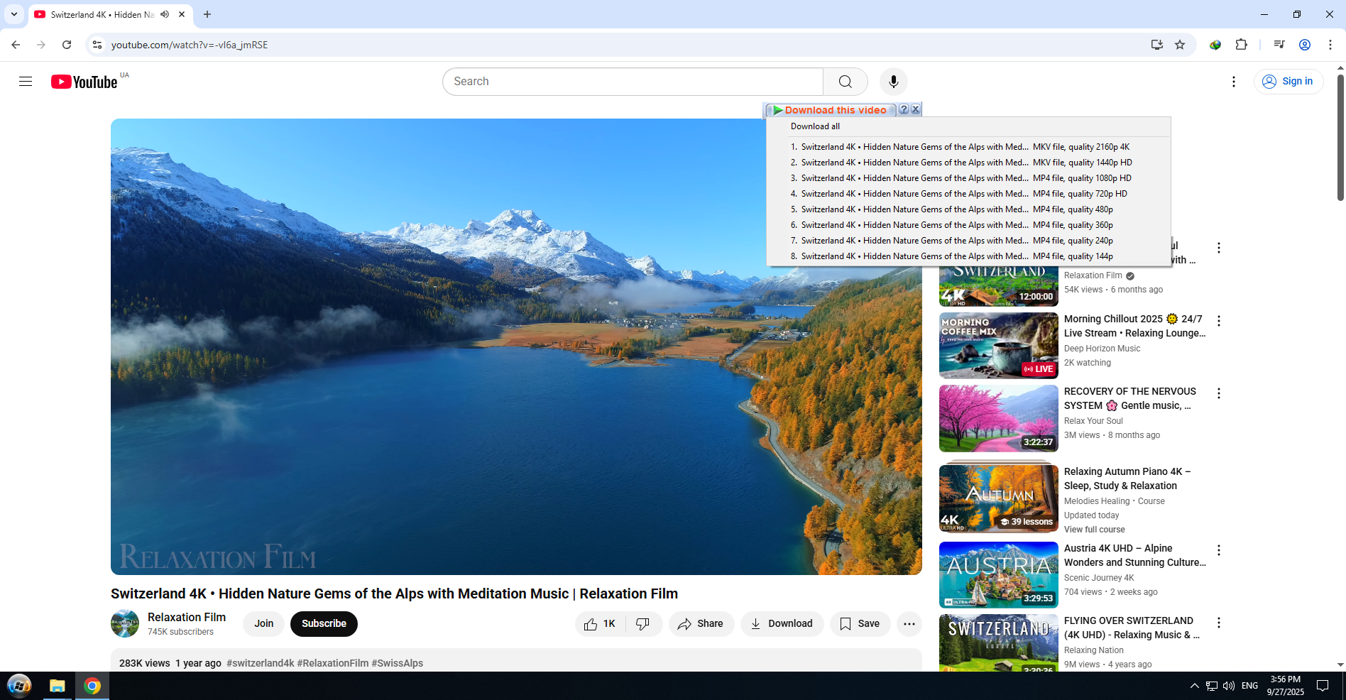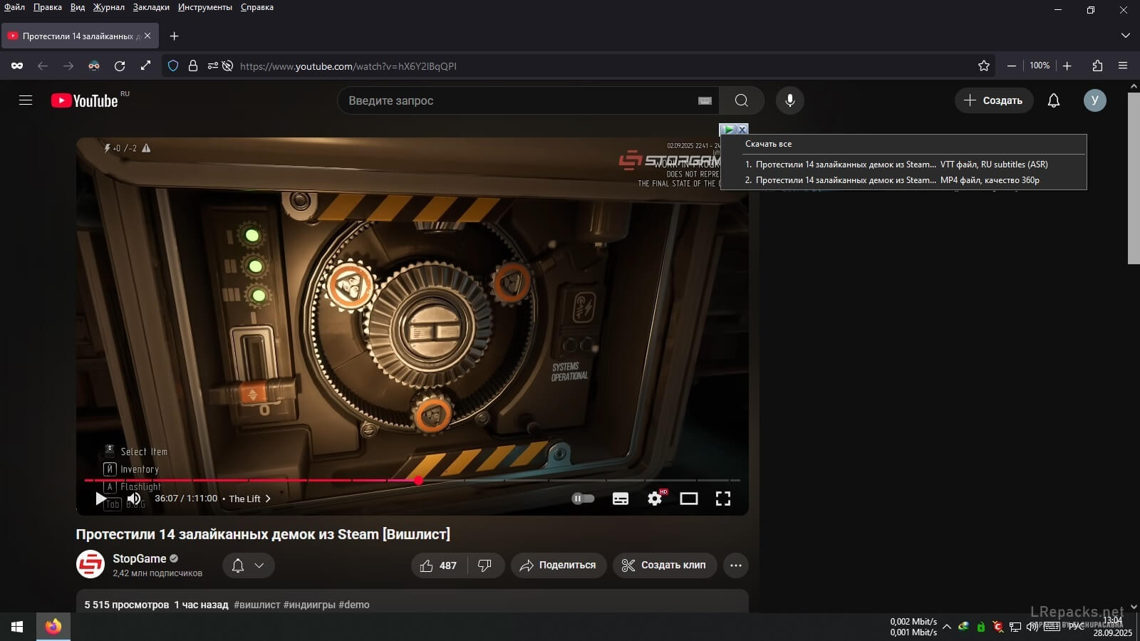 Запустил видео на Ютубе, а в панели скачивания вариант с 360р.