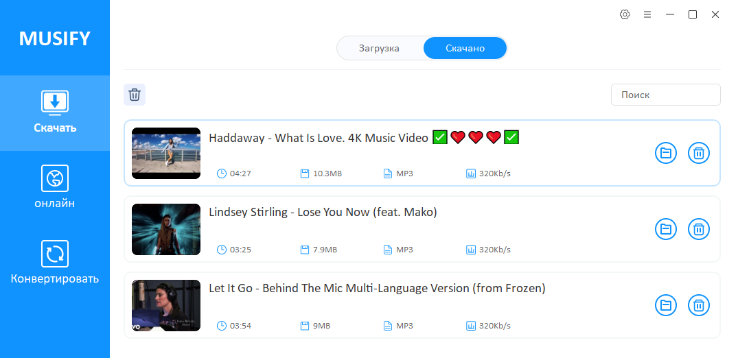 - Преобразование медиафайлов в формат MP3, M4A, WAV в высоком качестве