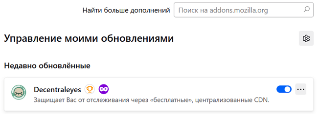 Расширения Firefox по дефолту автоматически обновляются. Ты и знать не будешь что обновилось, пока в "инструменты" не клацнешь "расширения и темы" (аbout:addons).