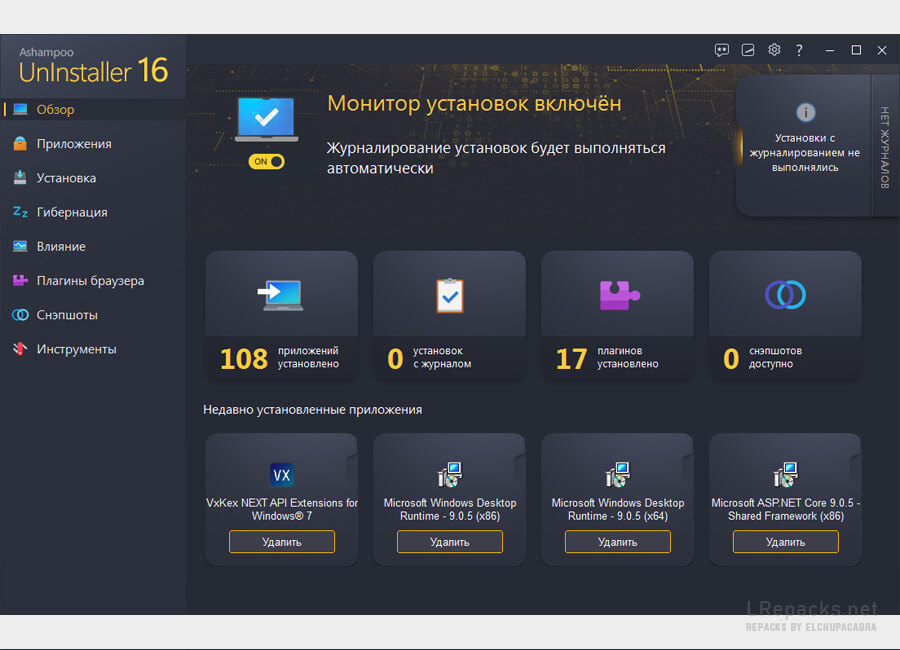 Ashampoo UnInstaller (Repack & Portable) - отличный инструмент от известного немецкого производителя программ для удаления приложений и их следов, очистки системы от мусора и сохранения оптимальной производительности ПК. Разработчики наделили программу технологией контроля изменений системы в реальном времени при установке приложений. Поэтому впоследствии эта программа легко, а главное полностью удаляет все элементы и следы установки, в т.ч. и записи реестра.