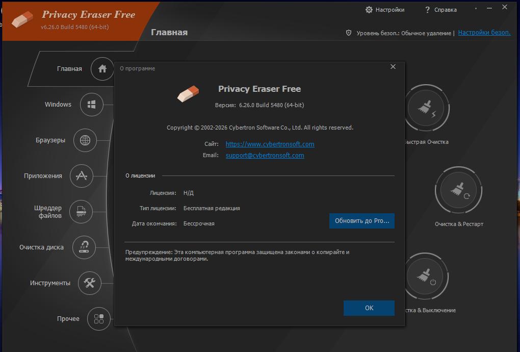 Privacy Eraser (Repack & Portable) - набор инструментов "все-в-одном" для защиты приватности путем удаления следов вашей онлайн-активности и последней деятельности на компьютере.